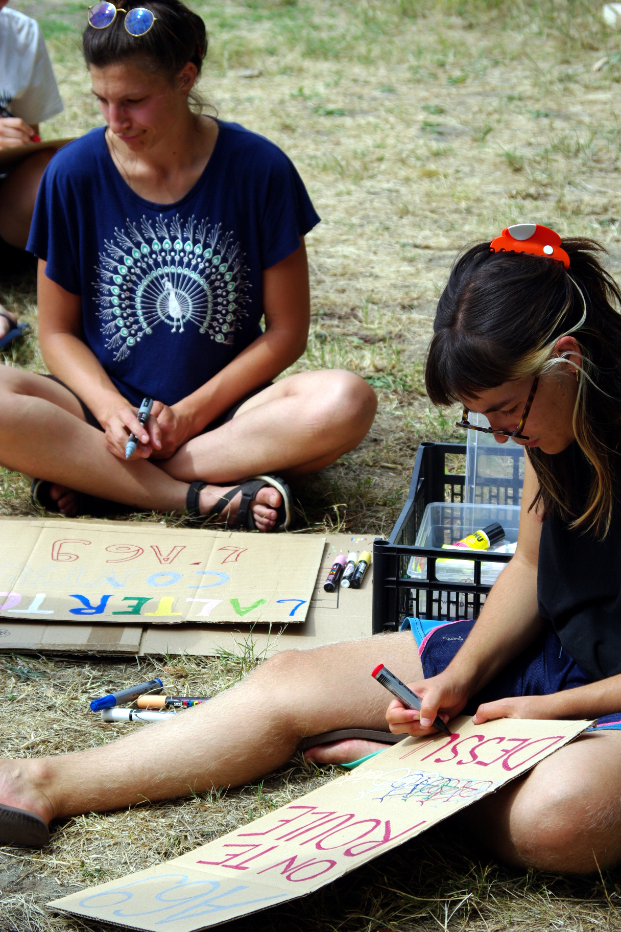 Parallèlement des ateliers artivistes préparent la manif de l’après midi. On peint des pancartes et on répète les chansons pour la chorale.