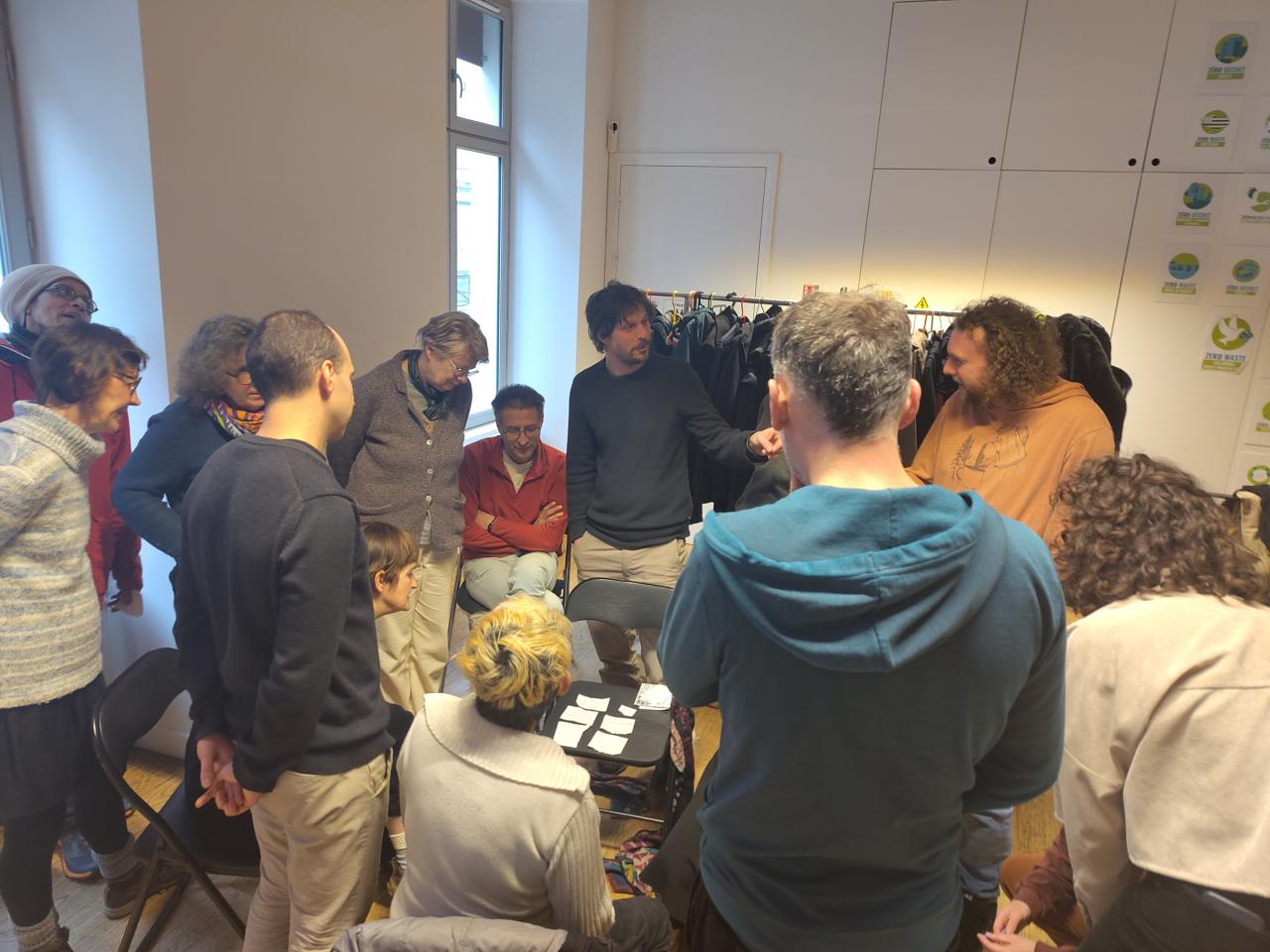 La plénière de janvier a tous les ans une saveur un peu différente, elle marque le moment où le parcours se finalise et la passation se fait entre l’équipe des défricheureuses (qui ont contacté en novembre et décembre des centaines d’alternatives dans la zone choisie) et l’équipe des prépa-étapes, qui vont organiser le parcours de l’été, par petits bouts de 4-5 jours. Cette plénière aura cette année une saveur particulière car elle va laisser une belle place à des débats sur deux sujets épineux de l’association : la gestion de la jauge d’inscription (comme faire pour accueillir le plus de personnes, en conservant une capacité tenable pour une vie collective saine, permettre le chassé-croisé des grosses villes sans sur-peupler les espaces mis à disposition par nos accueillants…) et la réflexion d’un tarif solidaire pour améliorer notre inclusivité sur le tour. Bonne nouvelle, nous avons trouvé des solutions à expérimenter l’été prochain pour tenter de résoudre ces deux problématiques, le suspens est entier !! (comment ? il faut venir à la prochaine plénière pour en savoir plus ??)